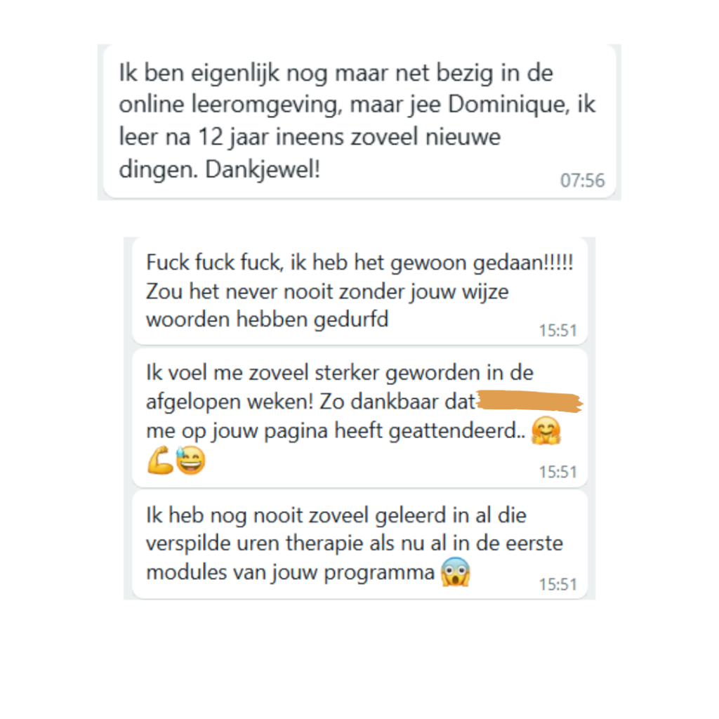 Hi, ik ben Dominique, oprichtster van de STOP jouw angst – online Academy. En als iemand begrijpt hoe verlammend angst kan zijn, dan ben ik het wel.